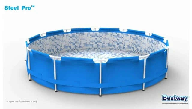 Rond stalen frame zwembad. Uitgerust met een extra versterkt, corrosiebestendig stalen frame met het slimme Seal & Lock systeem. Zeer gemakkelijk te installeren. Van duurzaam Tritech materiaal, bestand tegen UV stralen en chloor. Getest op gewicht en druk van grote hoeveelheden water. Incl. 12 V. cartridgefilter van 1,2 m³/u. Gemiddeld 1x per 2 weken cartridge vervangen, cartridge type I. Watercapaciteit (90%): 4.678 liter. Afmeting: 305×76 cm.