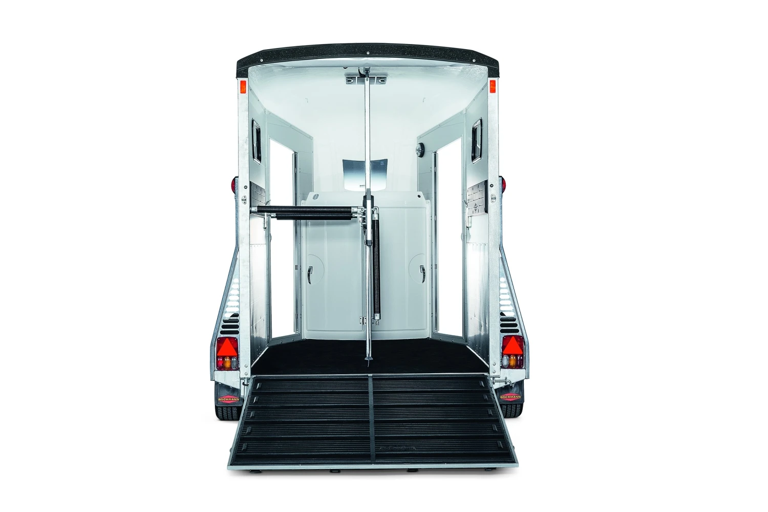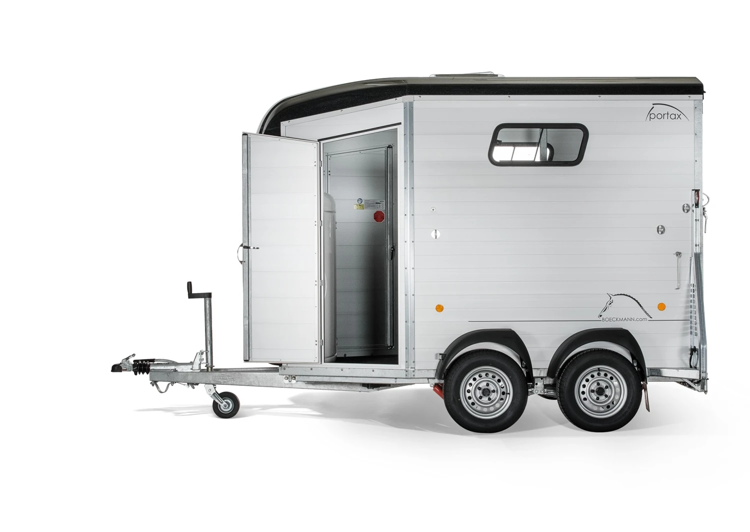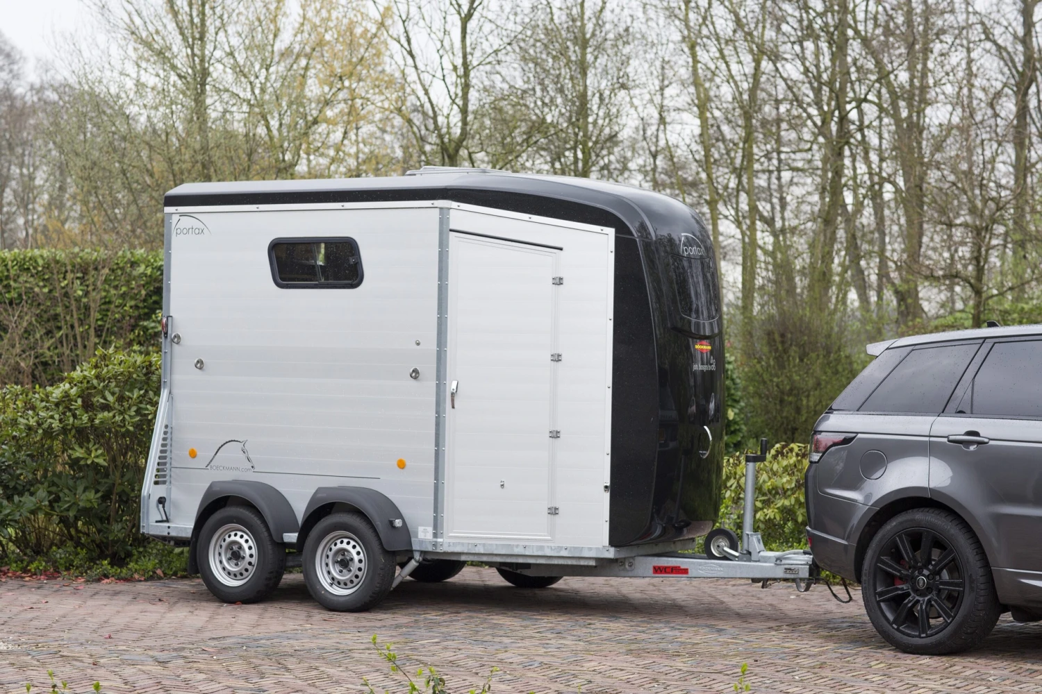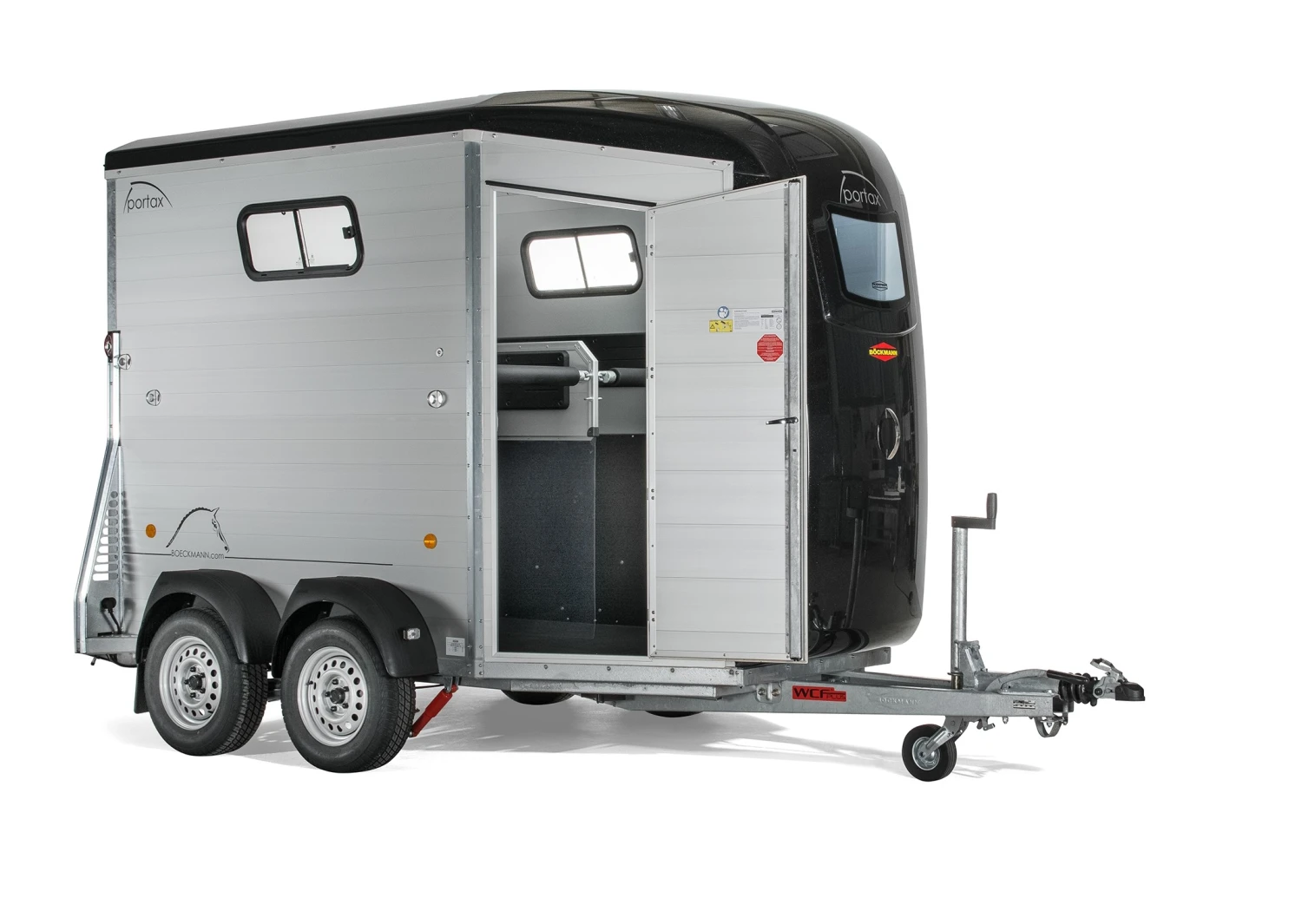 Multitalent en ruimtewonder in een nieuw design: De Portax E bieden standaard nog meer highlights en nog meer plaats voor paard en ruiter. Uitgerust met o.a. het World-Class-chassis (WCFplus) en achterklep + vleugeldeurcombinatie. Bovendien blinken de Portax modellen uit met een binnenhoogte van 2300 mm. Het totaal gewicht van deze trailer is 2400 kg. Met een eigen gewicht van 1100 kg kom je op een laadvermogen van 1300 kg.