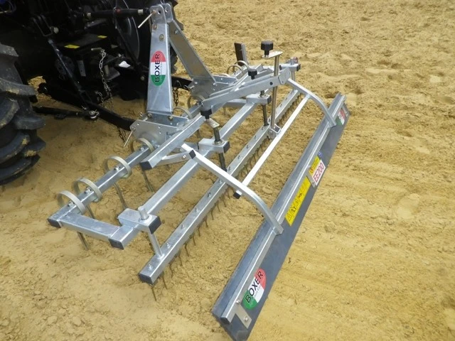 De Boxer EE bodemvlakker is robuust van constructie en gegalvaniseerd. De voorzijde is voorzien van zwaardere veertanden om de bak los te trekken. Op de 2e rij zitten lichte tanden gemonteerd die in hoogte versteld kunnen worden door middel van een spindel, om de grond fijn te maken. Met de rubberplaat aan de achterzijde kan men de diepte instellen. Ook maakt deze alles weer glad zodat de bak er weer perfect bij ligt. Ook voor de ATV.