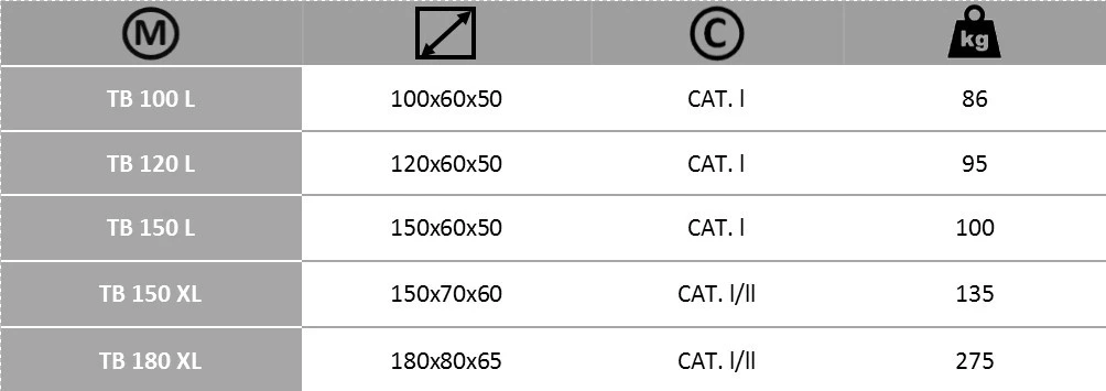 De TB XL transportbakken zijn uitgevoerd met achterschot