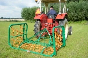 Onmisbaar om de weide in topconditie te houden. De weidesleep kan ook worden gebruikt om de manegebak te vlakken. Gelakt buizenframe met afgeronde hoeken en een hoekijzer achter de voorste buis, 3 rijen gietijzeren sterren.