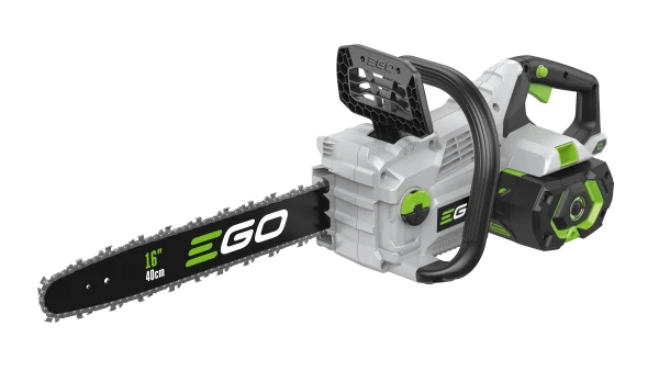 EGO kettingzaag CS1610E (40 cm). De CS1610E kettingzaag zaagt met zijn kettingsnelheid van 20 m/s moeiteloos door boomstammen tot 40 cm dik. De zaagkam zorgt ervoor dat de kettingzaag de controle over de zaagrichting houdt. De krachtige kettingrem op deze accu kettingzaag zorgt dat bij een terugslag de ketting zal stoppen, zodat het risico voor de gebruiker beperkt blijft. Op één volle acculading van bijvoorbeeld een 5Ah accu kan tot 300 zaagsnedes worden gezaaagd. Wanneer de accu leeg is, is deze met de snellader in 40 minuten weer volledig opgeladen. Het oliereservoir heeft een inhoud van 150 ml. Door het venster kan eenvoudig gecontroleerd worden hoeveel olie er nog in het reservoir zit. Daarnaast is deze kettingzaag voorzien van een automatisch smeersysteem. Voor deze kettingzaag is ook een kettingzaagtas (BCS1000) beschikbaar die afzonderlijk kan worden aangekocht. Zo kan de kettingzaag veilig worden opgeborgen na gebruik. LET OP: deze kettingzaag wordt geleverd zonder accu en zonder lader. Er is ook een kit versie met accu en lader verkrijgbaar: CS1614E.