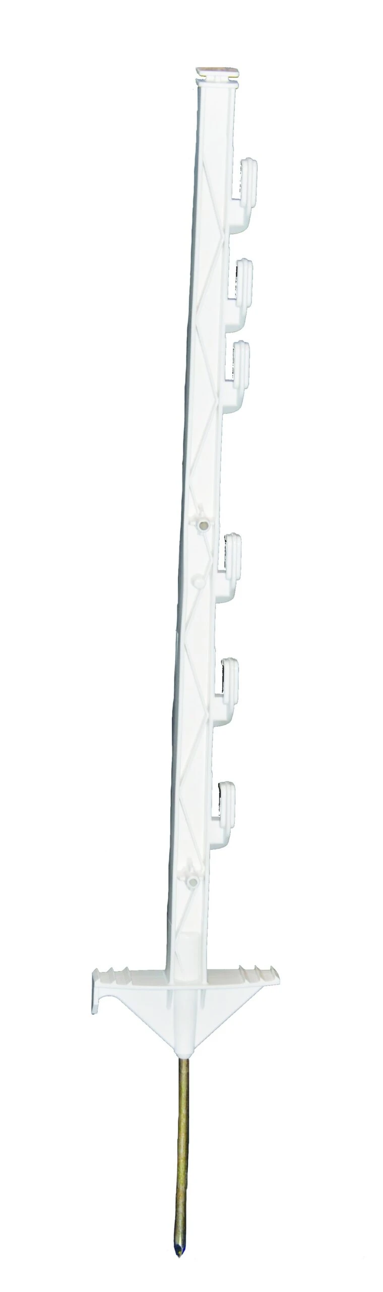 Zeer stevige en duurzame kunststof paal met 6 genummerde draadhouders en extra versterkte voet. Geschikt voor cord, kunststofdraad en lint tot 20 mm. De maximale afrasteringshoogte is 0,50 meter.