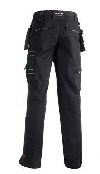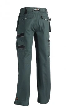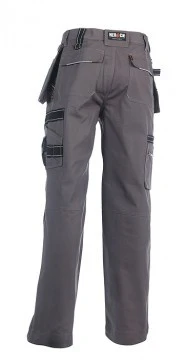 Multi-pocket waterafstotende broek met afritsbare spijkerzakken Verstelbare taille 1 taillelus met sleutelring 2 zijzakken 1 GSM-zakje 2 dijbeenzakken met 4 beenzakken 1 meterzak 1 penhouder Kniezakken 2 lussen 1 hamerlus 2 achterzakken met reflecterende piping Uitneembare zoom