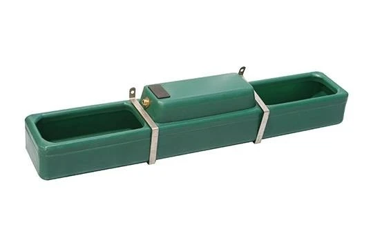 Lange smalle dubbele drinkbak, gemaakt van sterk polyethyleen.