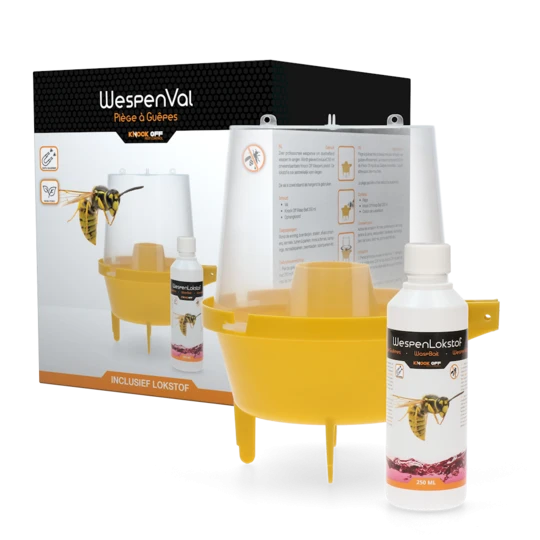 Zeer professionele wespenval om doeltreffend wespen te vangen. Wordt geleverd inclusief 250 ml onweerstaanbare Knock Off WespenLokstof. De lokstof is ook aantrekkelijk voor vliegen. De val is zowel staand als hangend te gebruiken.