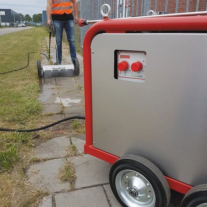 Robuuste heetwater onkruidbestrijdingsmachine in stalen frame. Voor professionele, intensieve inzet. Ook inzetbaar voor het reinigen van onder andere terrassen, vlonders, gevels en machines