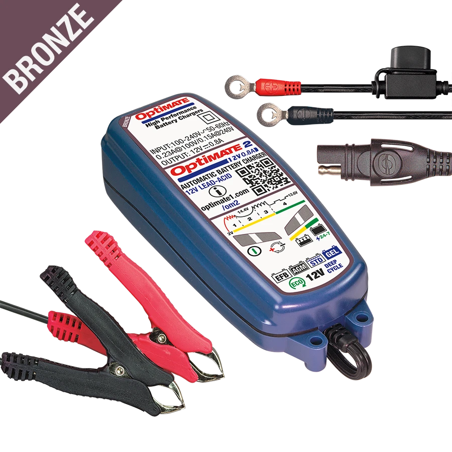 OptiMate 2, de veelzijdige, volledig afgesloten, automatische accubeheerder – Ultiem onderhoud voor starter & deep-cycle accu’s!
