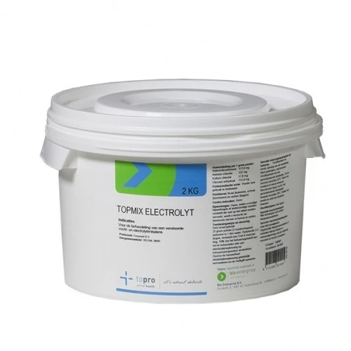 Topro Topmix electrolyt is een wateroplosbaar poeder op basis van elektrolyten en glucose. Het voorkomt en herstelt uitdroging door diarree bij kalveren, lammeren en biggen.
