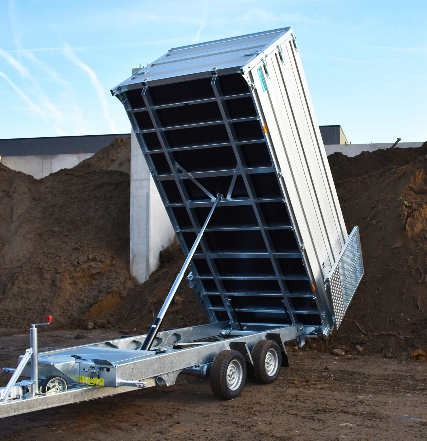 De TwinTrailer is een efficiente aanhangwagen voor verschillende ladingen. U kan zowel langs achter als via de zijkanten uw lading op of in de laadbak plaatsen. Dankzij de openklapbare onderborden heeft u ook rechtsreeks toegang tot het laadbed wat handig is bij het beladen van de twinTrailer met een heftruck. Het kippen van de inhoud van uw aanhanger verloopt snel en efficient. Enerzijds dankzij de handige bediening, anderzijds dankzij de snelle en krachtige cilinder en de grote kiphoek (51°).