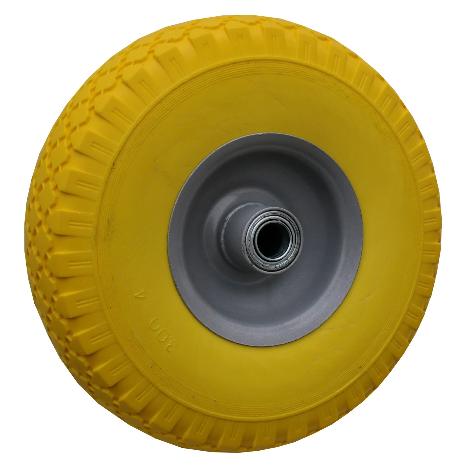 Wiel 300×4 softwiel geel, metaal kogellager 20 mm